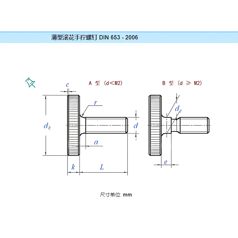 We also custom DIN 653 6*30 Knurled Clamping Screw, Low Head, Stainless Steel A1 for our busienss to business customers.