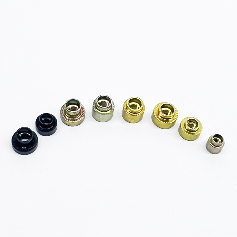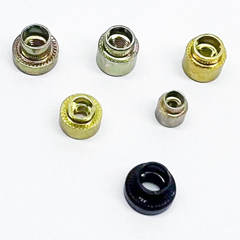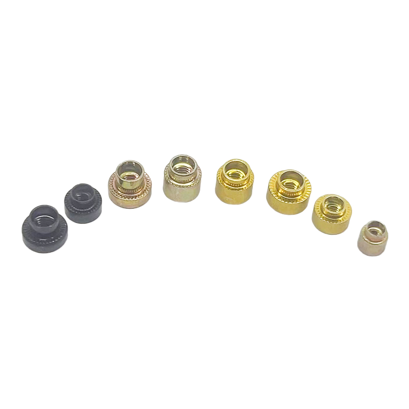 Pressure rivet nut is a kind of fastener. It is formed by cold heading with embossed teeth and guide grooves at the bottom. Through the press to press into the thin plate, embossed teeth bite plate, forming a solid connection. It has the characteristics of easy installation, firm and reliable, and can withstand certain tension and torque. Various specifications of these parts can be processed according to requirements.
