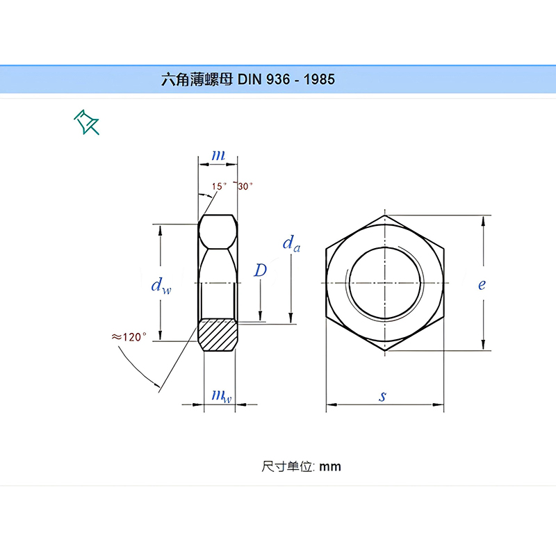 Home / Product / Standard Fasteners / Nut / Carbon Steel Nut / DIN 936 M16 Nut Low, Hexagonal, Steel, Zinc