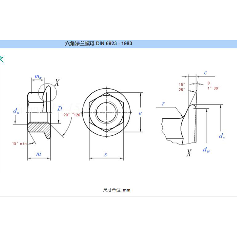 Made from cold pierced stainless steel material, the flange is fixed and rotates with the nut. The flange may be serrated to provide a locking action. The serrations are angled so that the nut will not rotate in the direction of loosening the nut. Because of the serrations, they cannot be used with washers or on scratched surfaces. The serrations help prevent vibration of the nut from moving the fastener, thus maintaining the holding power of the nut. Various sizes of these parts can be machined on request.