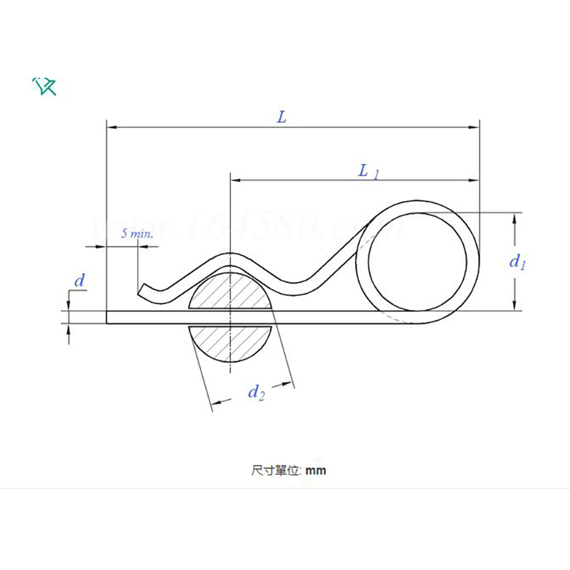Made on spring machines using spring steel or stainless steel materials, these spring cotter pins are self-tightening and are mainly used for fixing shafts and bolts. Various specifications of such parts can be processed upon request.