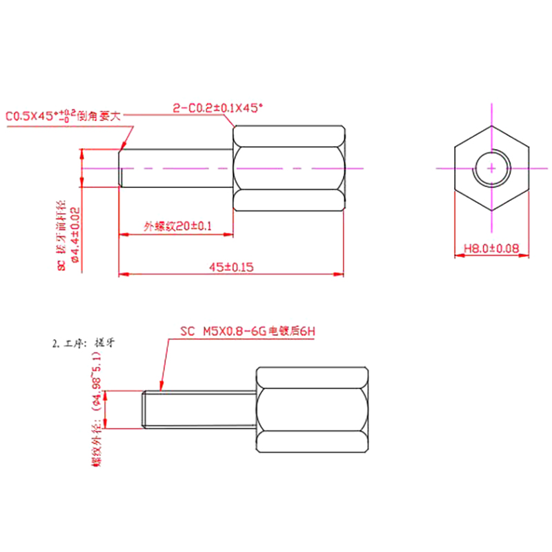 The use of carbon steel material turned, the head is hexagonal and the length is much longer than the conventional hexagonal bolts, can be manually adjusted or special wrenches to adjust the tightness of the components of a bolt, according to the needs of the processing of a variety of specifications of this type of parts.