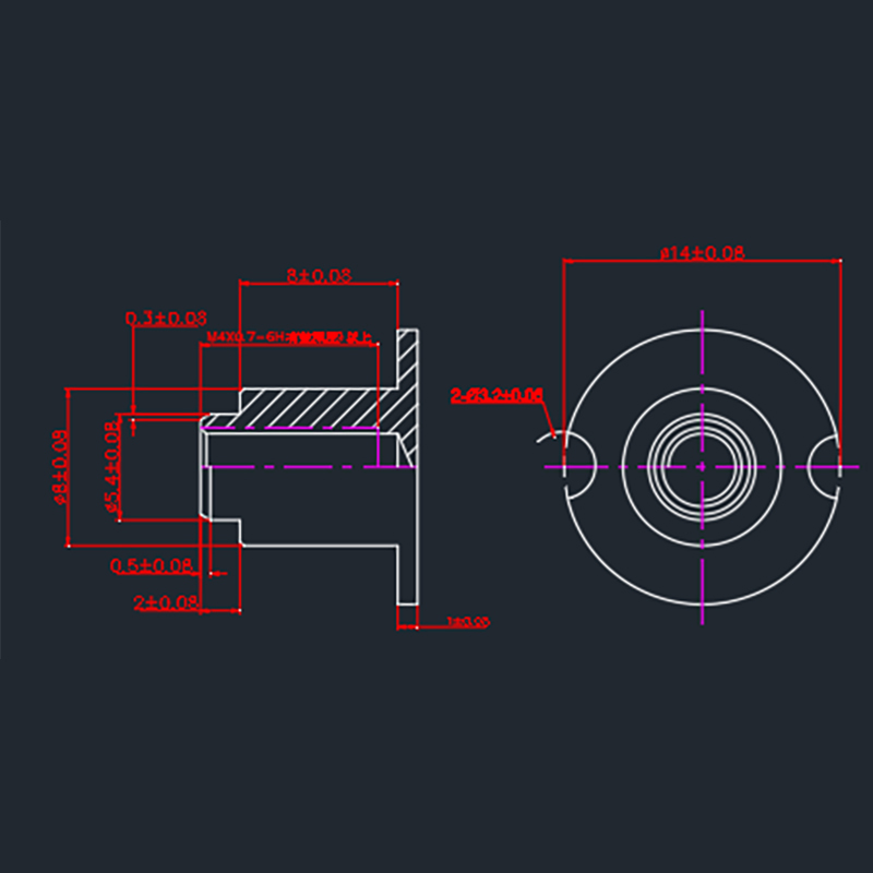 The use of carbon steel turning made of more, the head is round and has two semicircular notch, the body for two sections of cylindrical, inside the blind hole screw teeth of a nut. Used for spot welding in the hole in the thin sheet metal parts on the stud, according to the demand for processing a variety of specifications of such parts.