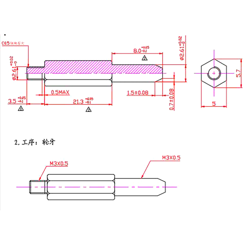 The use of carbon steel material turning made of a kind of both ends have external threads, the middle of the hexagonal column of fasteners, used to connect the two parts, and make it keep a certain distance from the non-standard stud, according to the needs of processing a variety of specifications of this type of parts.