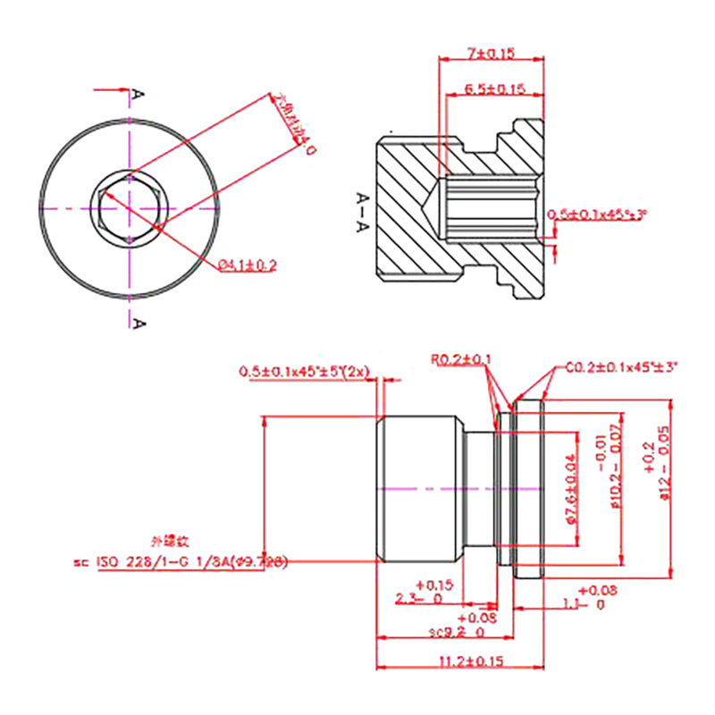 Turned from copper, a bolt used in the interface of fluid equipment, according to the needs of the processing of various specifications of such parts.