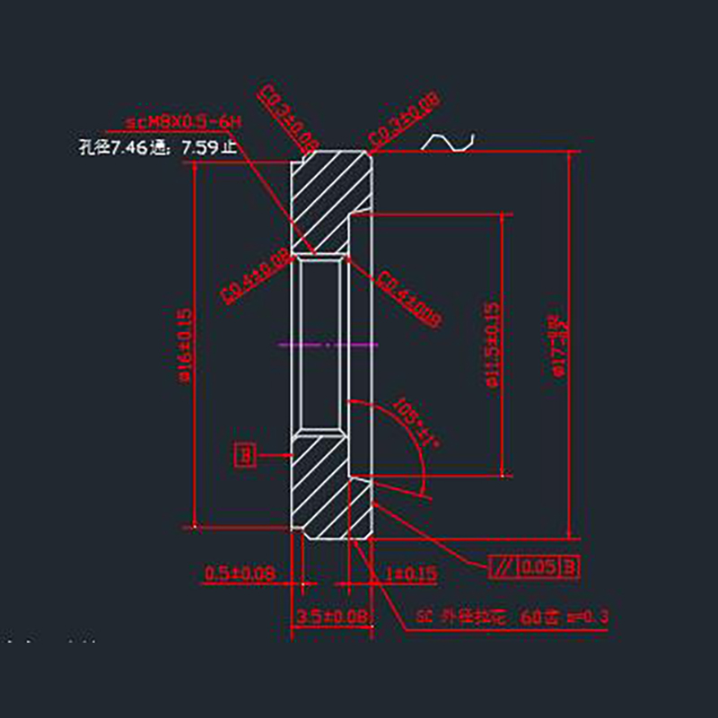 Turned from copper, a thin nut with a straight outer ring and countersunk holes and threads. It is a kind of manually adjustable fastener specially used in specific equipment, and various specifications of this kind of parts can be processed according to the requirements.