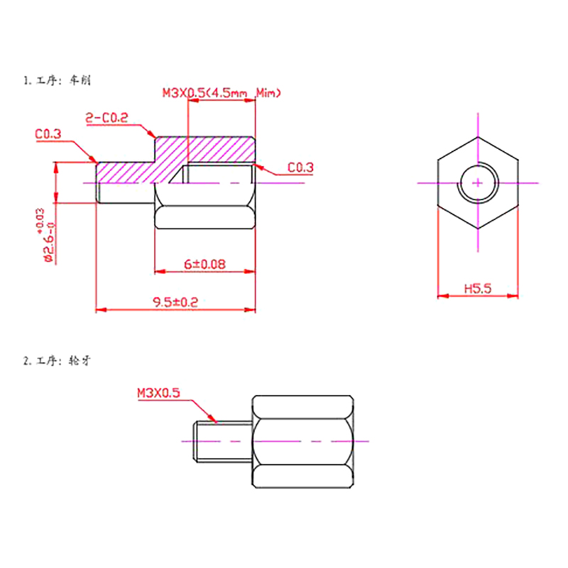 Non-standard studs made of turned copper for connecting two parts and keeping them at a certain distance can be processed according to the needs of various specifications of such parts.