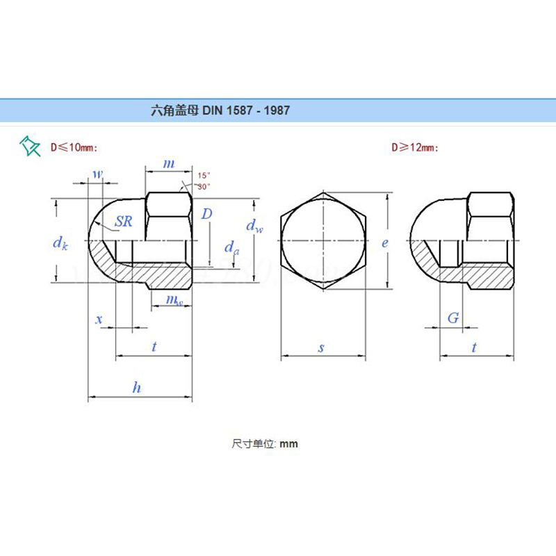 The use of stainless steel material made of cold pier, cap nut as the name implies is a hexagonal nut with a cap, the role of the cap is to fasten the outer exposed part of the cover, to prevent moisture or other corrosive substances from entering the inside so as to play a role in preventing rust, and thus improve the use of its own as well as the use of connecting parts of the time. Various specifications of these parts can be processed according to demand.