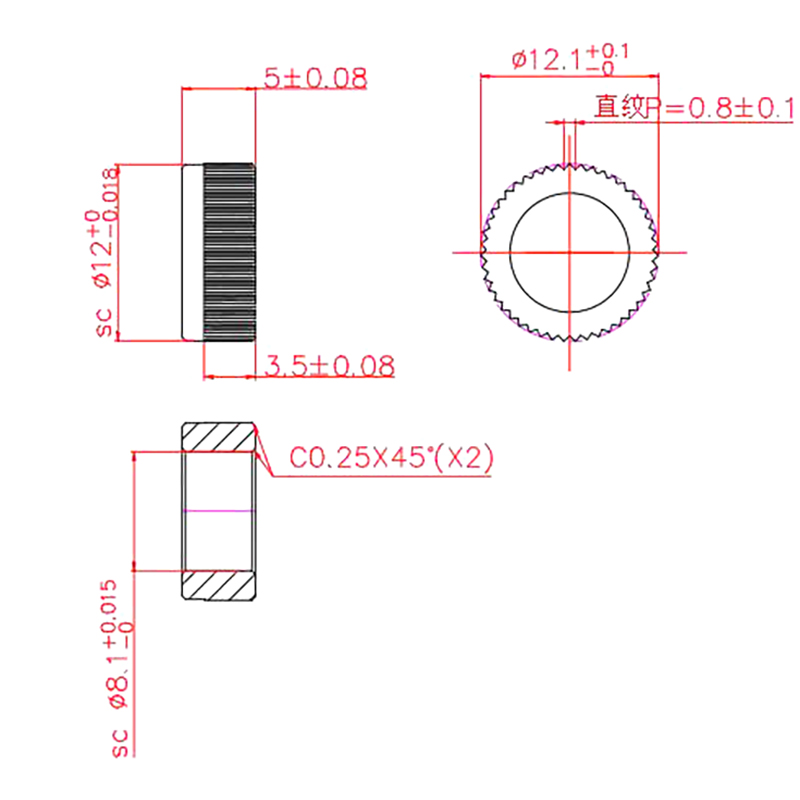 Turned from stainless steel, a type of bushing with a pattern on the outer surface and a rounded inner hole. Used for injection moulding into plastic fittings, the pattern on the outer surface is conducive to enhancing the bonding with the plastic parts, which can reduce friction, wear and corrosion, thus improving the life and performance of mechanical equipment. Various specifications of such parts can be processed according to requirements.